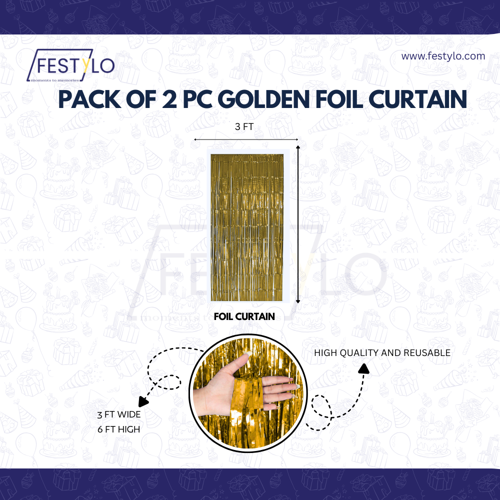 2 Golden foil frill curtains